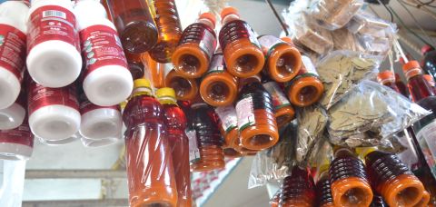 Diversidade de produtos é a marca da banca de Cláudia Moura, que há 18 anos vive da venda de alimentos. Na banca são encontrados castanhas, amendoins, azeite, amêndoa uva passa, camarão, leite de coco, bacalhau, miraguaia, quiabo, azeite, gengibre, queijo coalho e requeijão, entre outros itens.