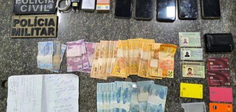 A partir das informações apuradas, os investigadores realizaram diligências com o apoio da Polícia Militar e localizaram os suspeitos. Durante a ação, foram apreendidos aparelhos celulares, cartões bancários de terceiros, anotações e dinheiro em espécie, materiais que serão analisados para subsidiar as investigações e identificar outras possíveis vítimas.