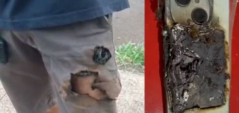 Um celular explodiu no bolso de um homem enquanto ele era atacado por cachorros nesta quarta-feira (18), em Cascavel, no oeste do Paraná. Reinaldo Duarte de Almeida é a vítima e contou que, no ataque, um dos animais mordeu o aparelho, causando a explosão da bateria.